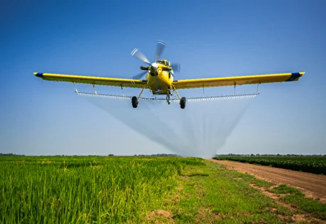 Эффективная обработка больших площадей с помощью самолётов, обеспечивающая равномерное покрытие полей удобрениями и химикатами.